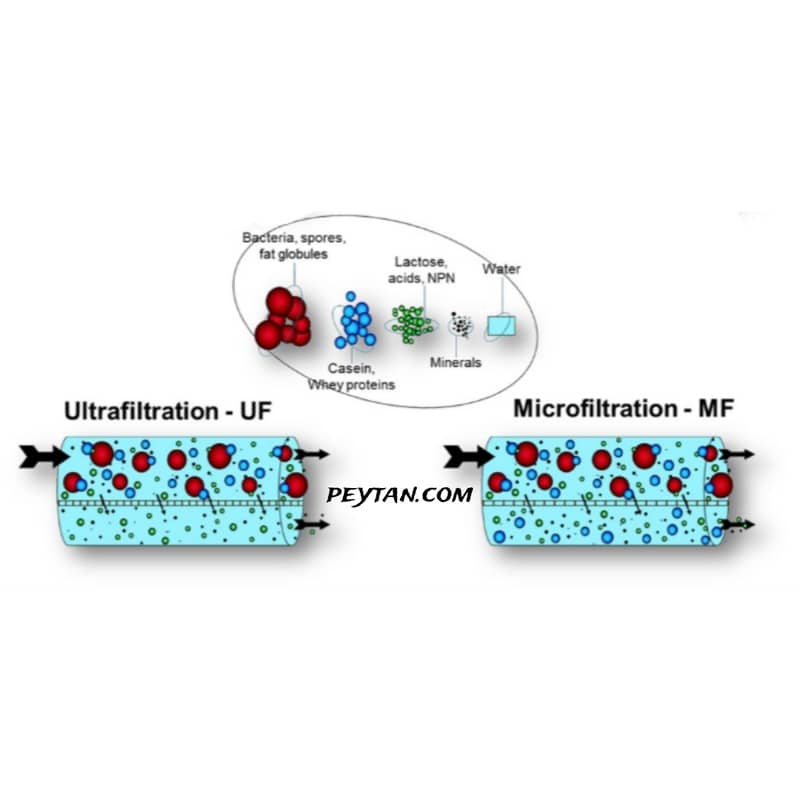 شیر اسکیم (بدون چربی) که ترکیبی از لاکتوز ، پروتئین ، املاح و آب است ، وارد دستگاه اولترافیلتراسیون (ultrafiltration) میگردد؛