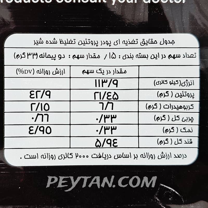 ترکیبات موجود در پروتئین تغلیظ شده شیر پگاه :